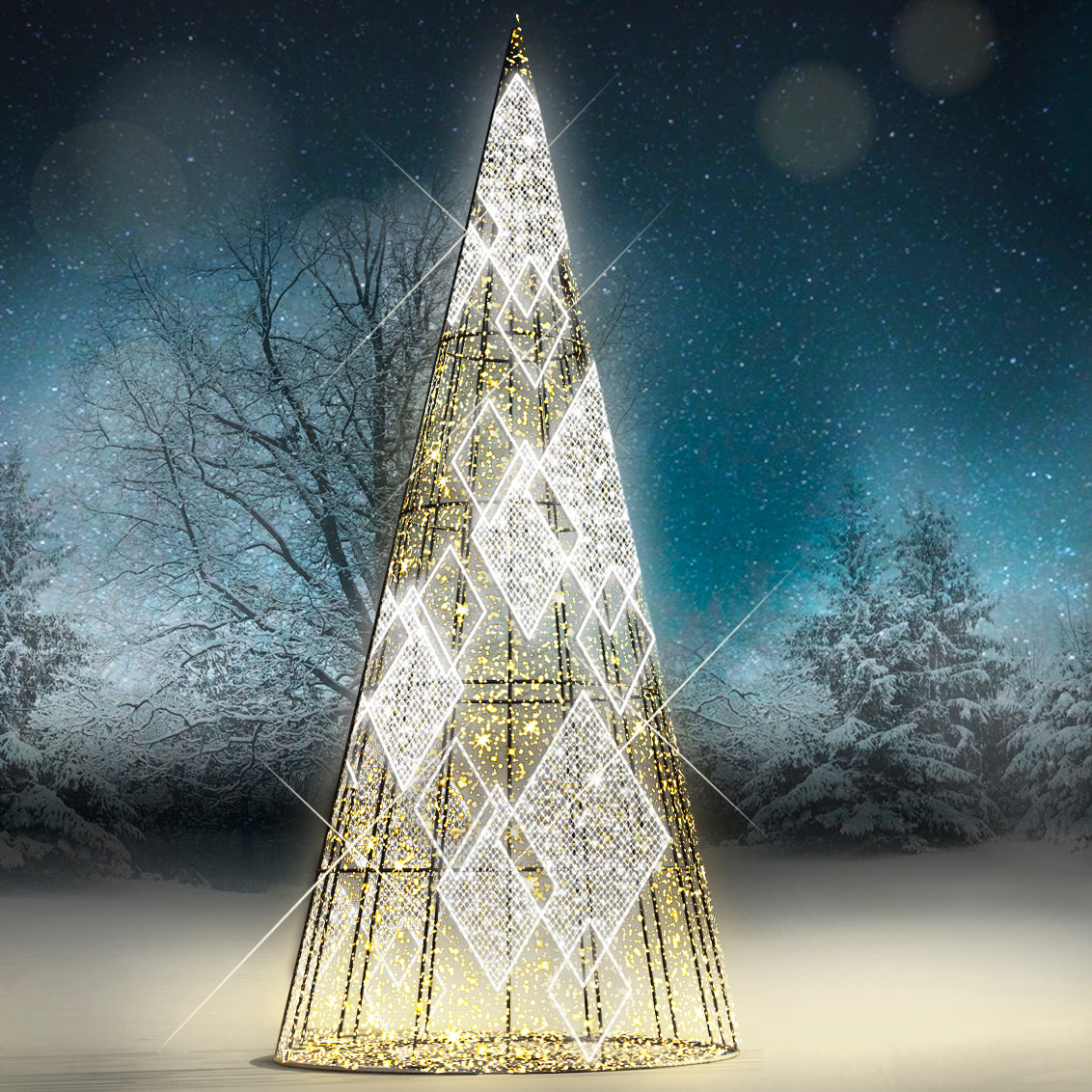 Whether you're lighting up a plaza, anchoring a shopping promenade, or creating the ultimate selfie destination, the Diamond Twinkle Tree delivers with radiant sparkle, graceful scale, and visual drama that lasts all season long.